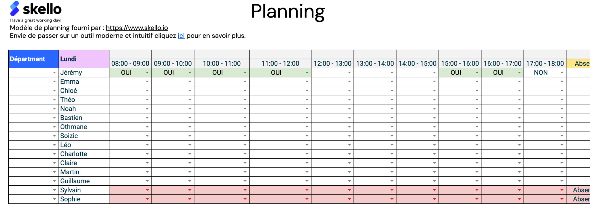 - Outil RH : il aide les managers à suivre les présences. Par exemple, si un salarié termine plus tôt une journée, la feuille en garde une trace.
