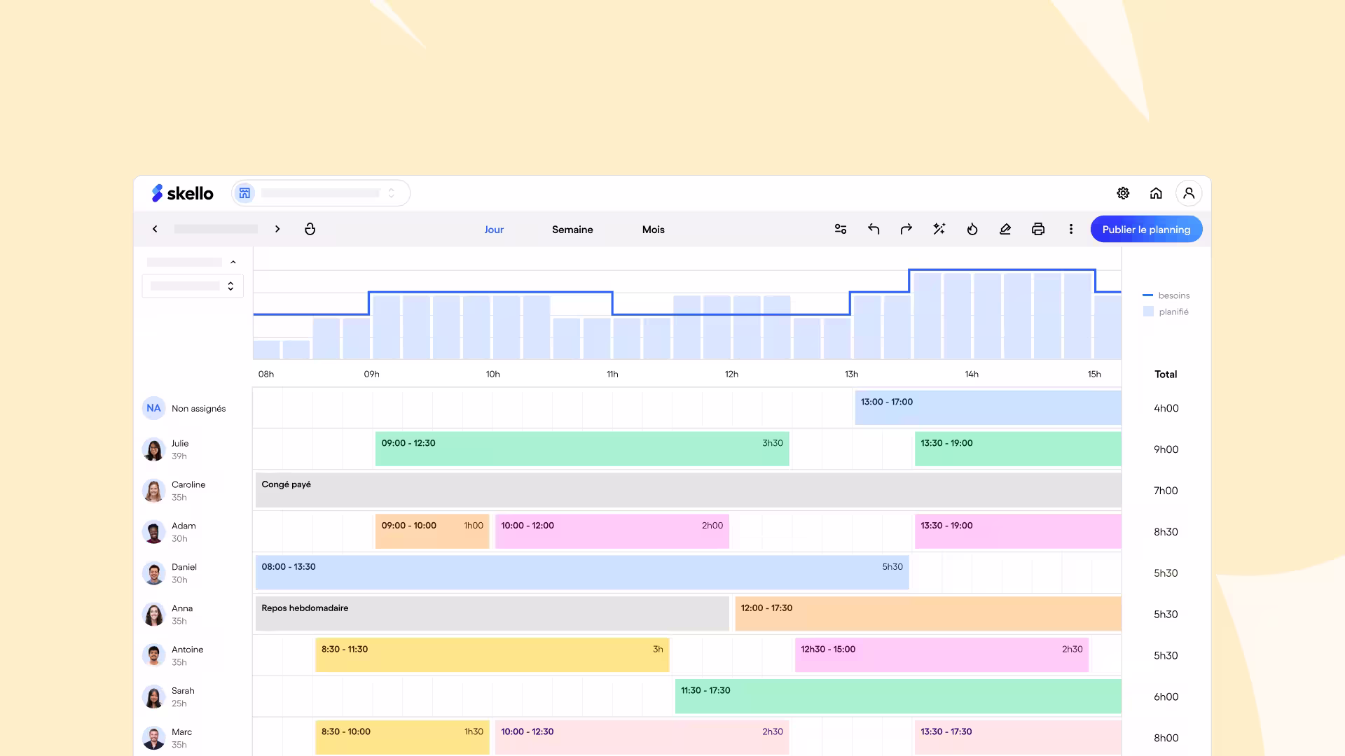 Découvrez concrètement comment notre gestion des congés et des absences s'intègre à la perfection dans un système de planning intelligent. Anticipez, organisez et soufflez !