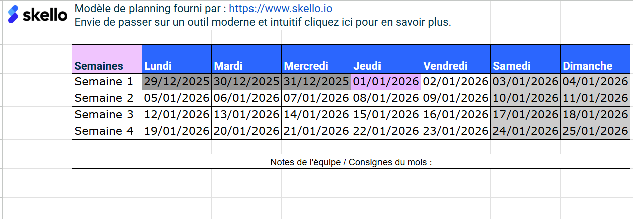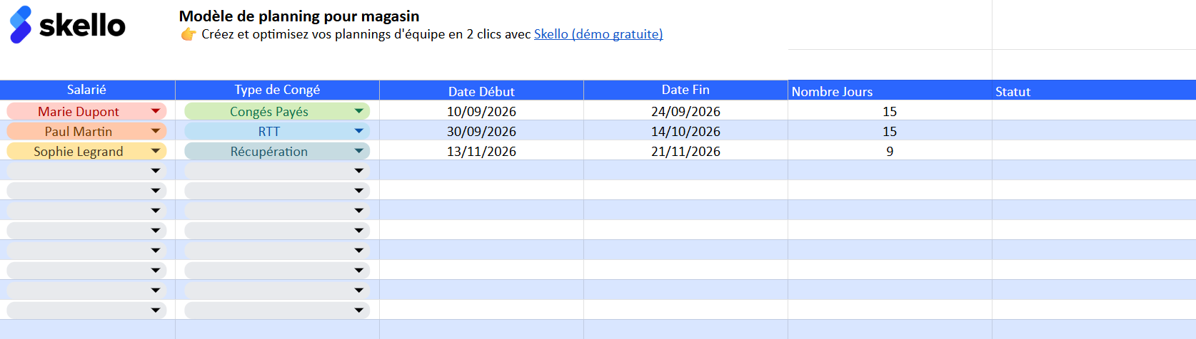 - Si vous gérez une grosse équipe, découvrez aussi notre article sur les plannings de gestion de personnel sur Excel.