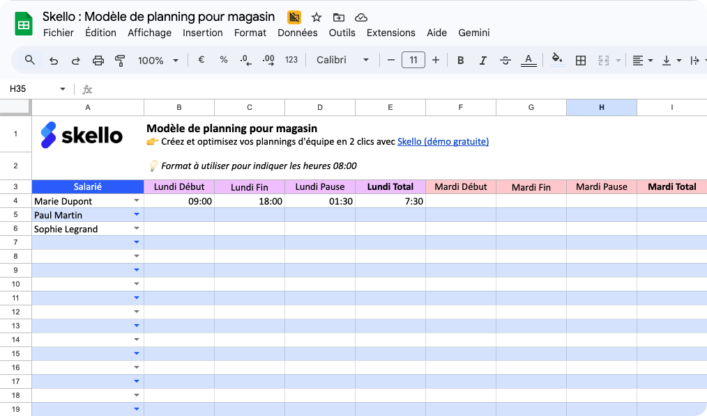Télécharger notre modèle de planning pour votre magasin (Gratuit)