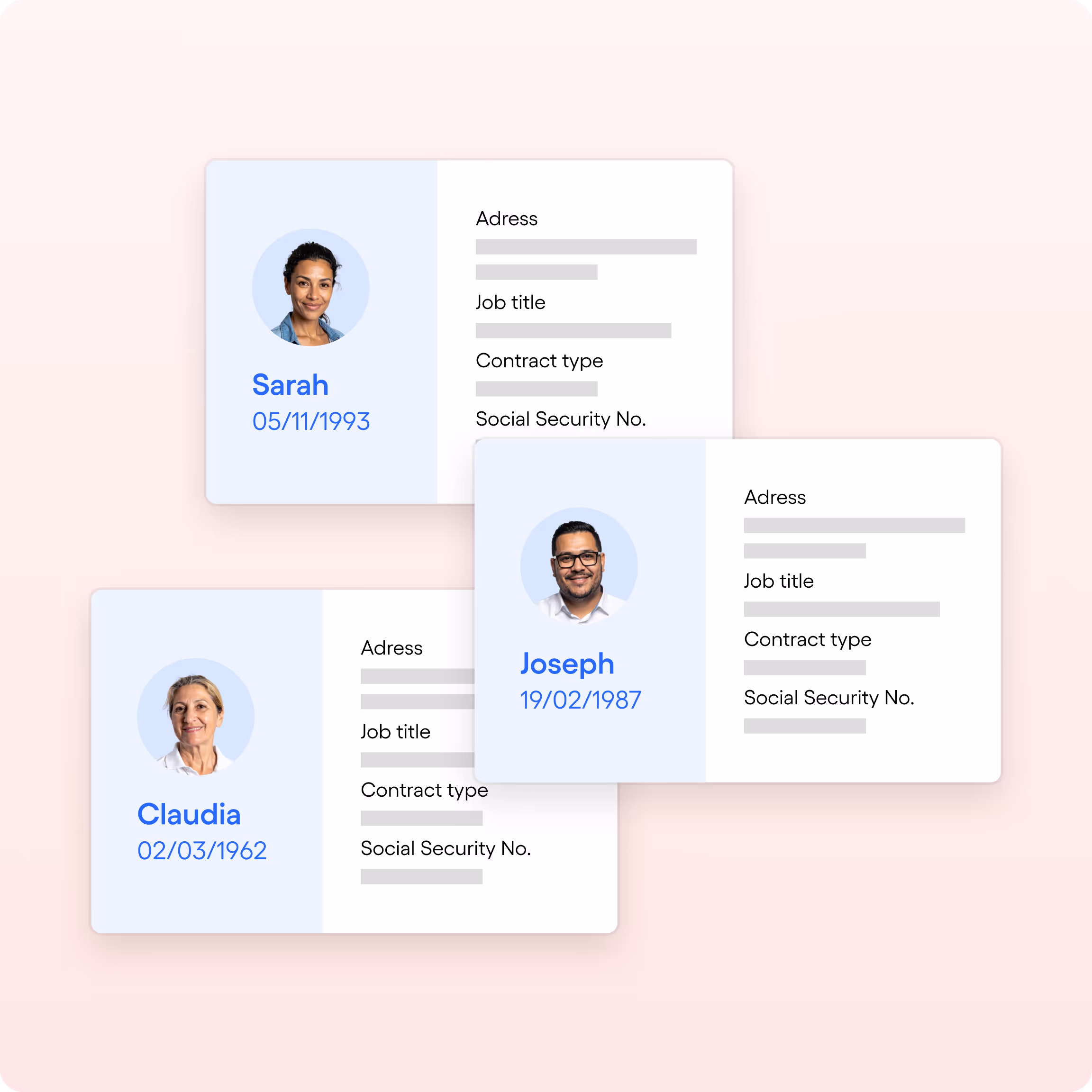Keep all key employment data at your fingertips: contract type, hours, salary, hourly rate…