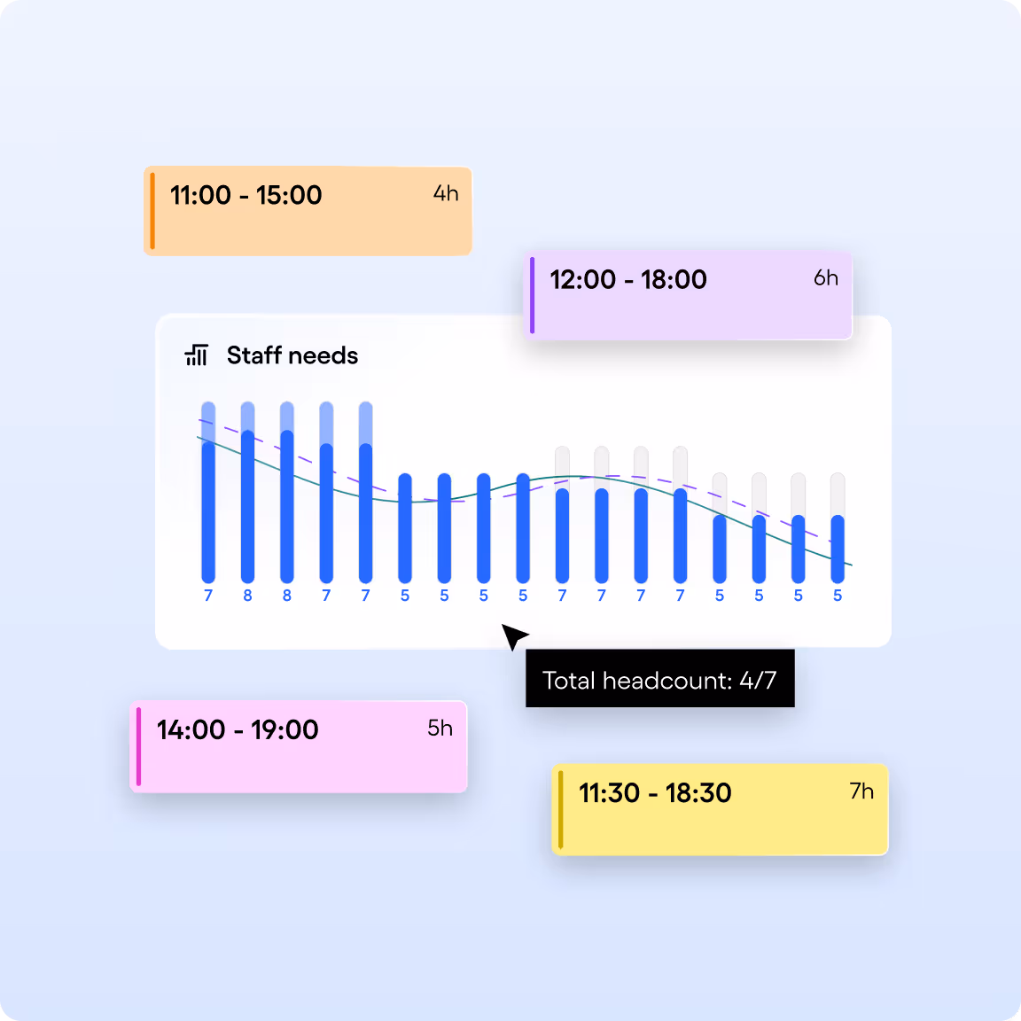 Skello’s analytics automatically calculate labour costs, helping you manage expenses based on your sales forecasts. You can also optimise resource allocation thanks to intelligent scheduling, ensuring the right employees are in the right place at the right time.
