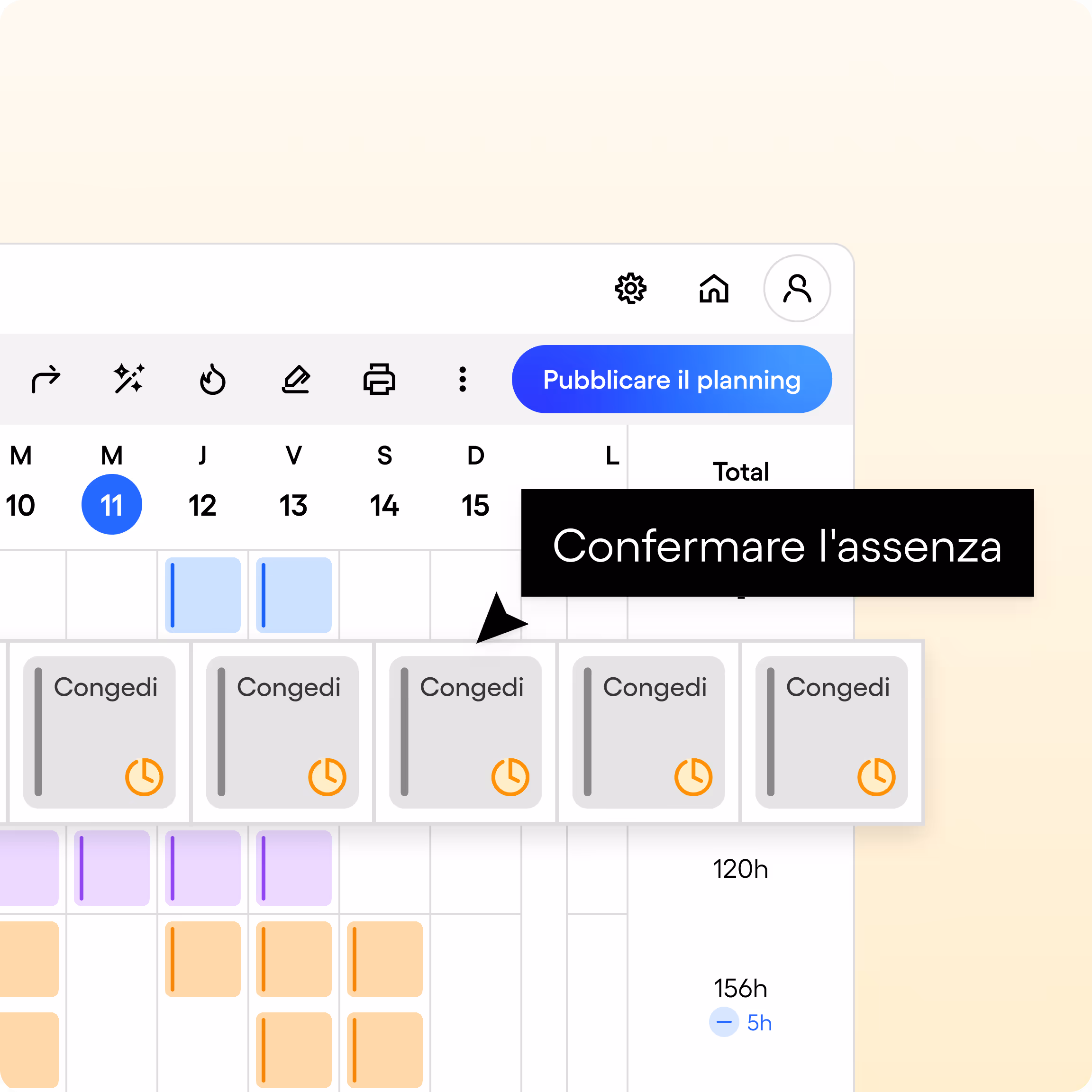 I saldi vengono calcolati automaticamente in base al contratto del dipendente, ai turni pianificati e alle assenze convalidate. Questo riduce gli errori e garantisce precisione.