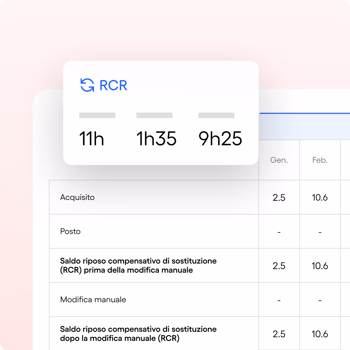Segui facilmente le ore in più o in meno dei dipendenti grazie a un calcolo automatico conforme alla normativa e ai turni pianificati.