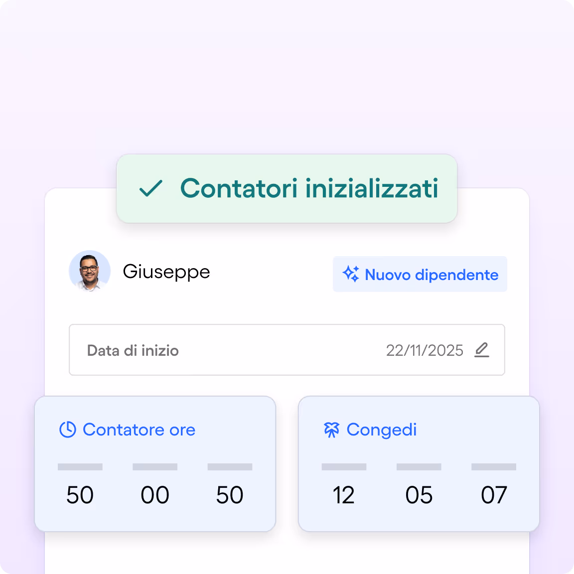 I contatori si attivano o si sospendono automaticamente in caso di assunzioni, cessazioni e variazioni contrattuali.