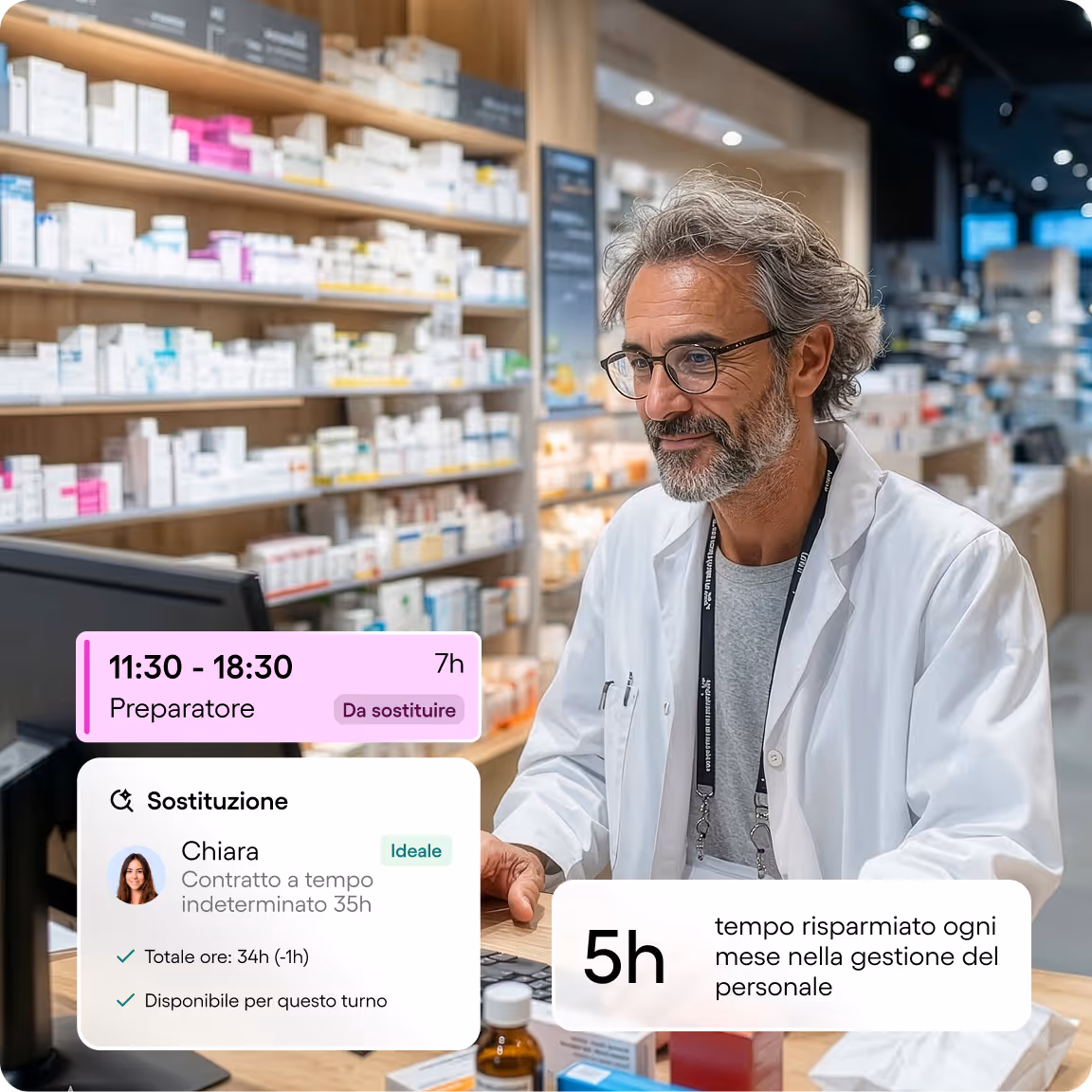Skello offre una pianificazione assistita e ottimale che si adatta a tutti i settori. La nostra soluzione pianifica i dipendenti giusti al momento giusto incrociando le loro disponibilità, competenze, i tuoi vincoli legali e i costi operativi. In media, i nostri utenti risparmiano 22,88 ore al mese nella gestione delle pianificazioni.