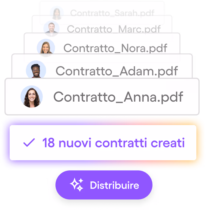 Personalizza i tuoi modelli di documenti e automatizza la creazione dei contratti e delle clausole aggiuntive dei tuoi dipendenti.